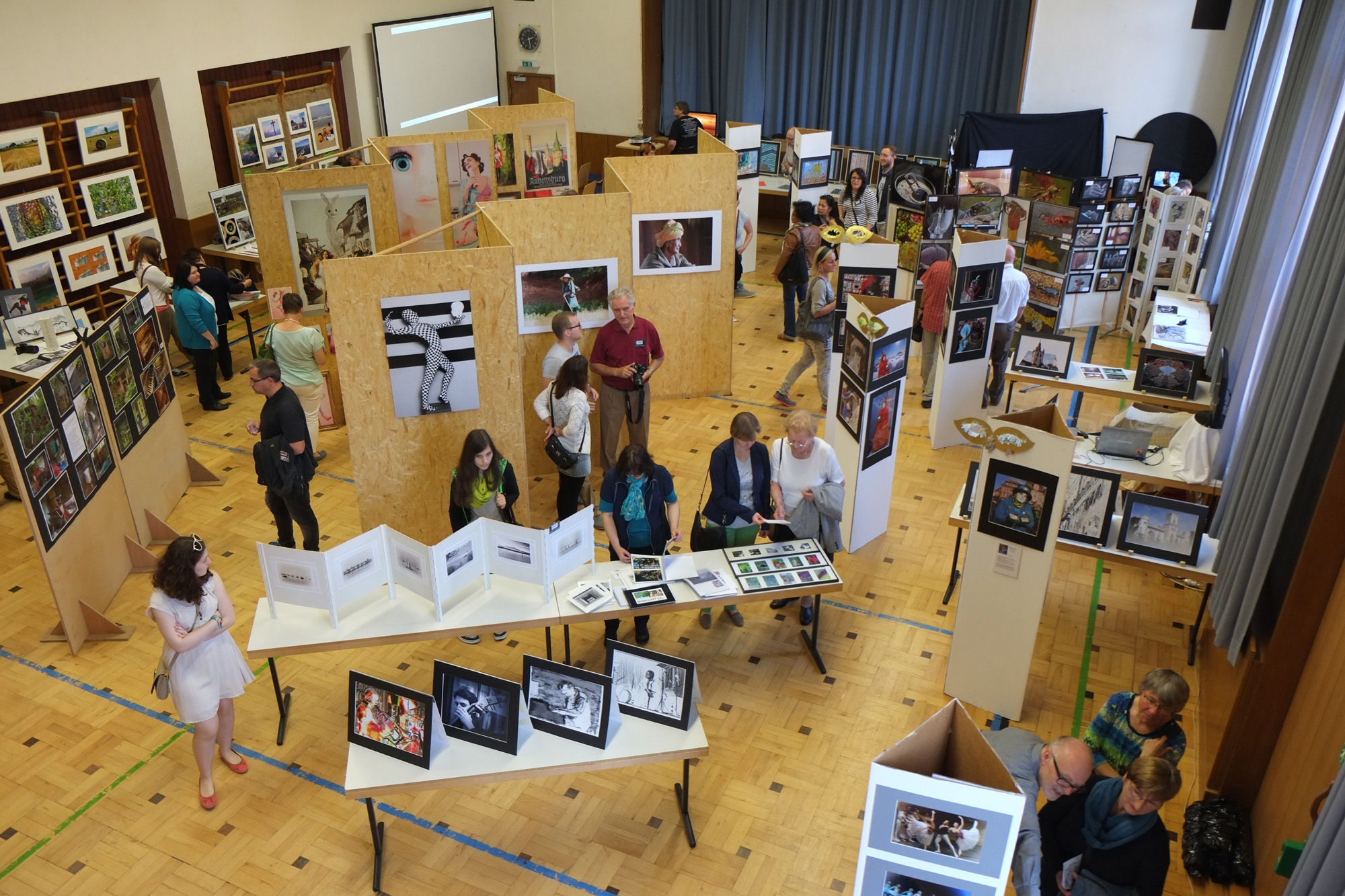 Am Sonntag, den 12. Oktober veranstaltete die focus-Fotogruppe Ravensburg e.V. gemeinsam mit dem Fotoforum Weingarten und der Fotografin Claudia Casagranda die 1. Ravensburger Fotomatinee im Institut für Soziale Berufe in Ravensburg. Gut 300 Besucher konnten sich in der Aula des IfSB an der überwältigenden Vielfalt der ausgestellten Arbeiten erfreuen. Die 20 Fotografen zeigten Arbeiten auf professionellem Niveau in den verschiedensten Themenbereichen der Fotografie. Nicht nur die Bildbetrachtung, auch die Gespräche mit den Fotografen waren für viele Besucher eine Bereicherung. So konnte man die Schönheit einer Stubenfliege im Detail bewundern und gleichzeitig erfahren, welch aufwendige Technik und wie viel Geduld für solch eine Aufnahme nötig ist. Es wurde nicht nur deutlich gemacht, dass bewegende Portraits aus exotischen Ländern nicht vom 5-Sterne Hotel aus geschossen werden, sondern auch, dass nur Aufnahmen authentisch gelingen, die nah dran an den Menschen und ihren Lebensbedingungen entstehen. Ebenso erklärten die Fotografen bereitwillig den Ablauf eines Fotoshooting, dessen Vorbereitung, die Lichtsetzung, benötigtes Make-up, Shooting bis zur Nachbereitung. Die Besucher konnten dies sogar gleich im Selbstversuch erfahren. Nicht nur akkurat ausgerichtete oder gewollt chaotisch angeordnet, an Holzwänden, auf Rupfensack oder im Herbstlaub platziert, jedes Bild wurde gekonnt in Szene gesetzt. Die vielen ausgelegten Fotobuch-Unikate ließen zahlreiche Besucher die Zeit vergessen und den Ausstellungsbesuch auf mehrere Stunden ausdehnen. Eine sehr gelungene, informative und interessante Veranstaltung für alle Beteiligten.