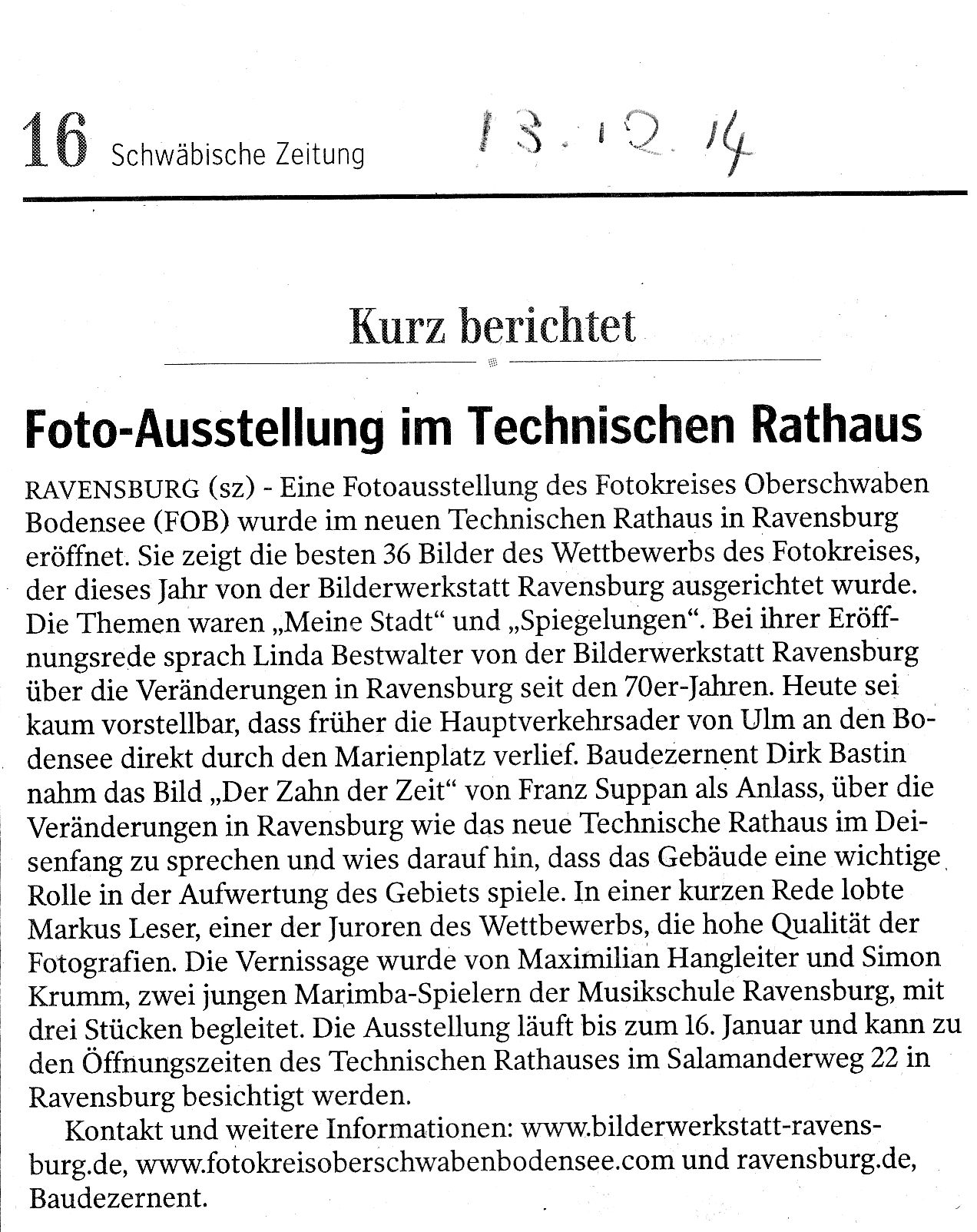 Ein Bericht dazu erschien am 11.12.14 in der Bad Waldseer Ausgabe der Schwäbischen Zeitung und heute, 13.12.2014 in der Ravensburger Ausgabe: