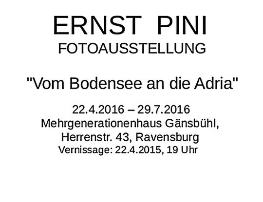ernst 2 Veröffentlicht März 30, 2016 in 540 × 415 in Fotoausstellung: Ernst Pini „Vom Bodensee an die Adria“ ← Vorherige