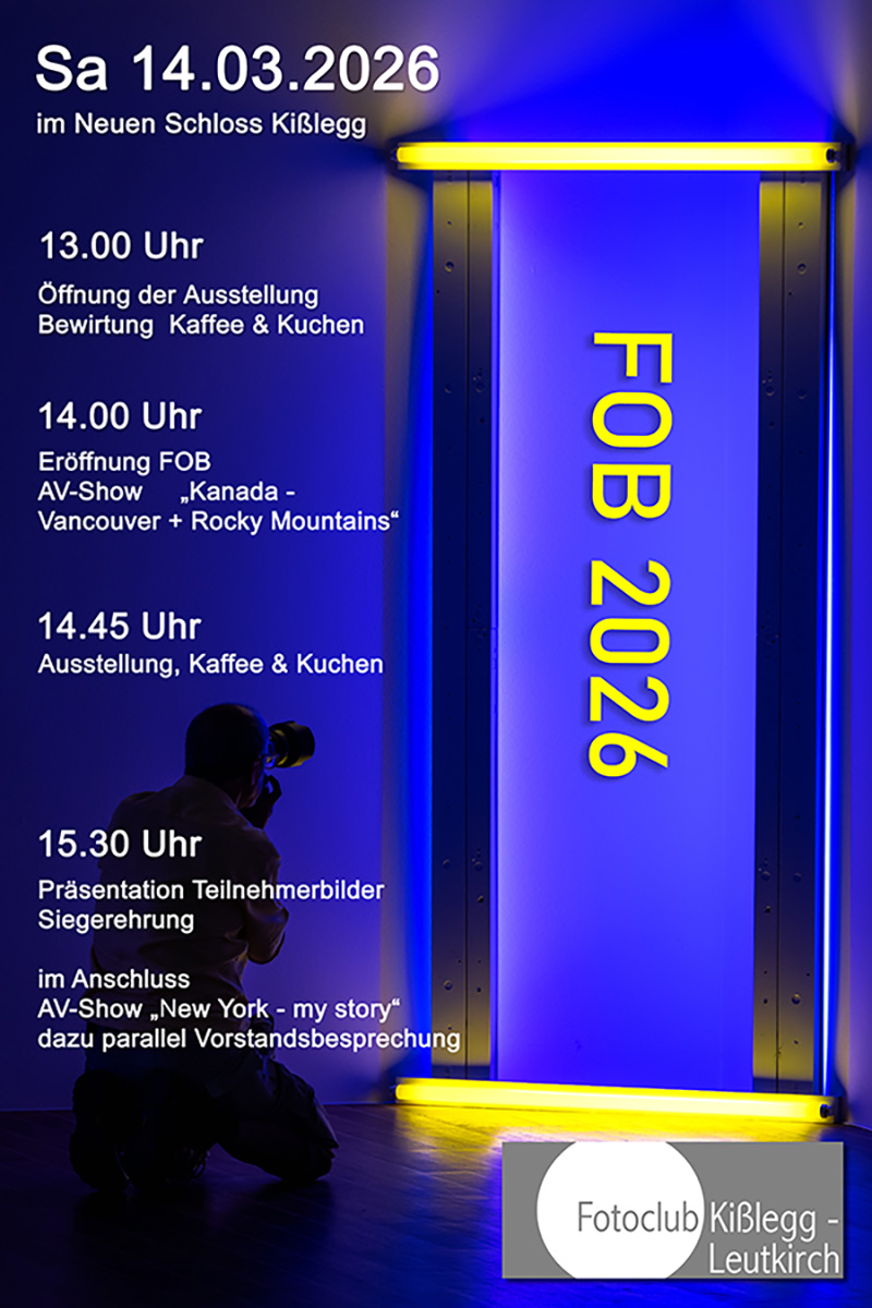 Der Fotoclub Leutkirch-Kißlegg richtet den diesjährigen FOB-Wettbewerb aus. Abgabetermin ist jetzt am Wochenende.